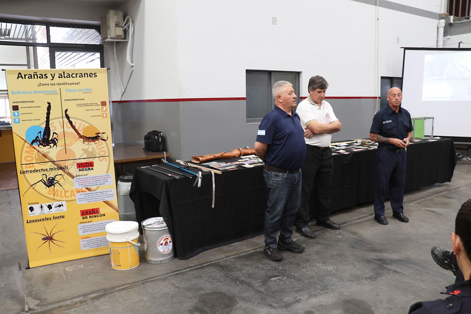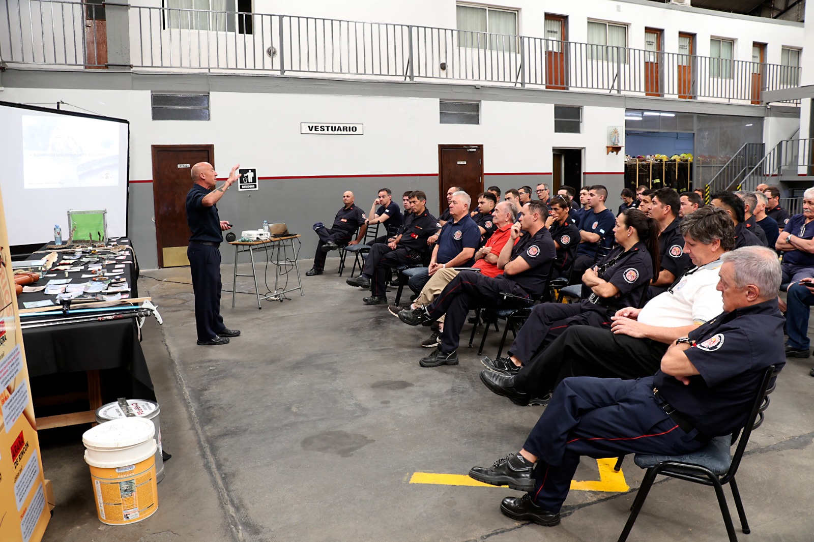 Durante la mañana, la actividad estuvo destinada al Cuerpo Activo, con una charla técnica orientada al reconocimiento de especies, la prevención de accidentes y el abordaje seguro en intervenciones operativas. La capacitación fue dictada por el Suboficial Daniel De Fazy del Cuartel de Bomberos de Balcarce, acompañado por el Director Provincial de Capacitación, Fernando Alessio. De Fazy brindó herramientas teóricas y prácticas fundamentales para el trabajo cotidiano del bombero, especialmente en ámbitos urbanos y rurales.